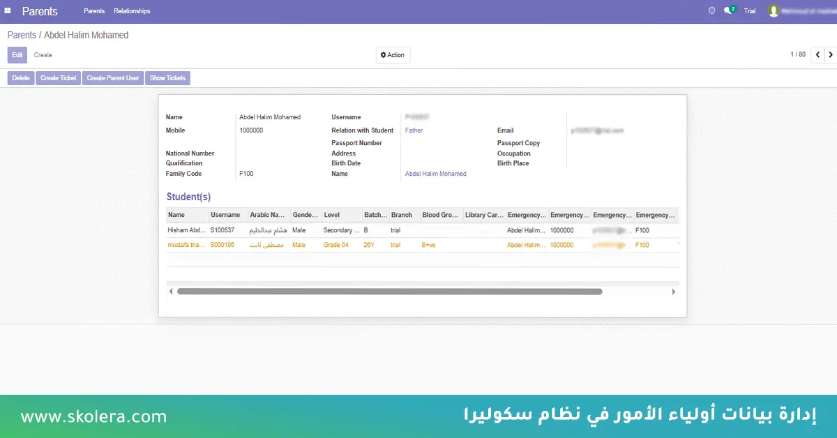 - إدارة بيانات الوالدين: يتيح النظام تسجيل بياناتهم بسهولة للتواصل معهم عند الحاجة.